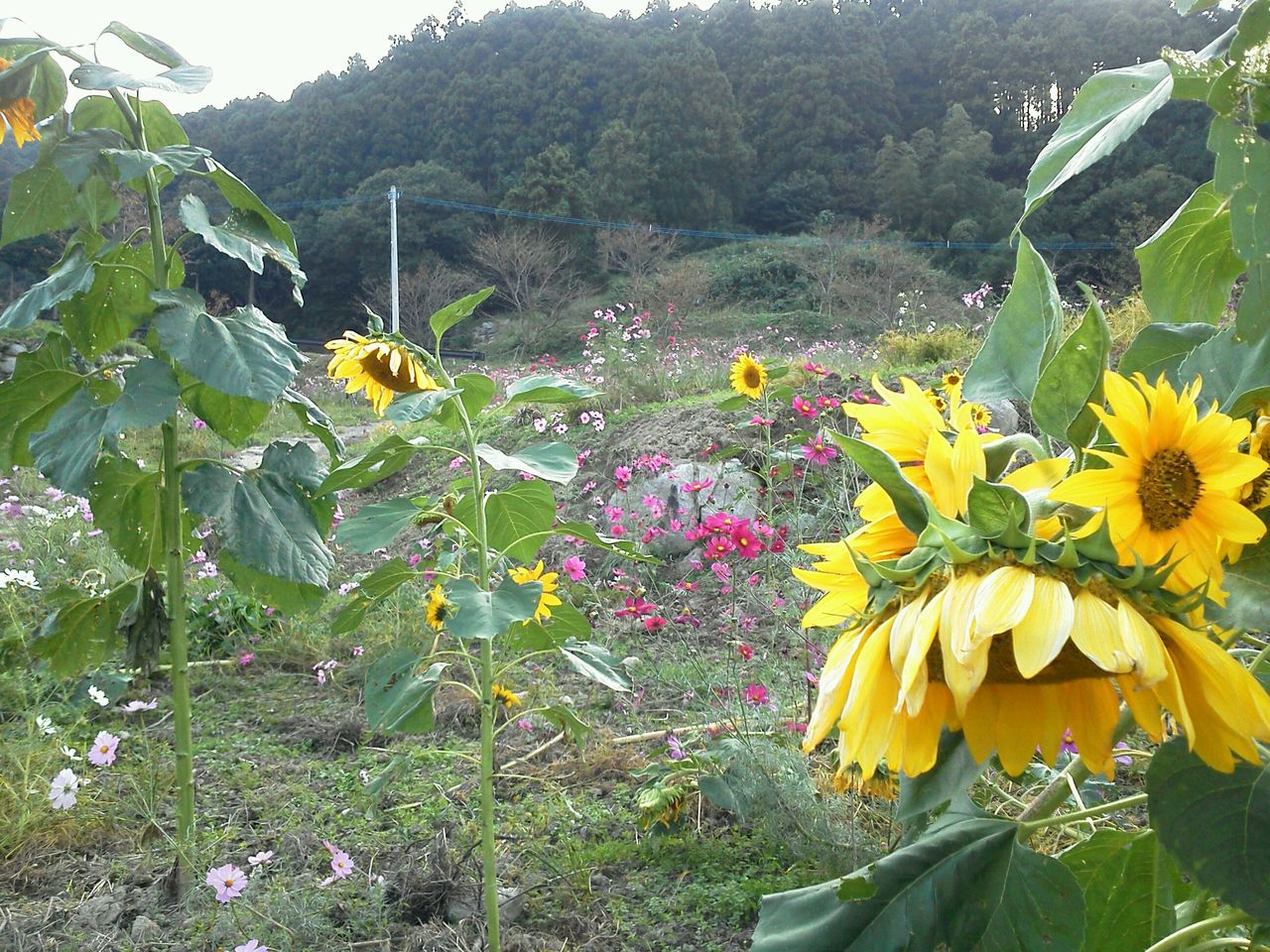 ひまわりと、コスモスの競演畑