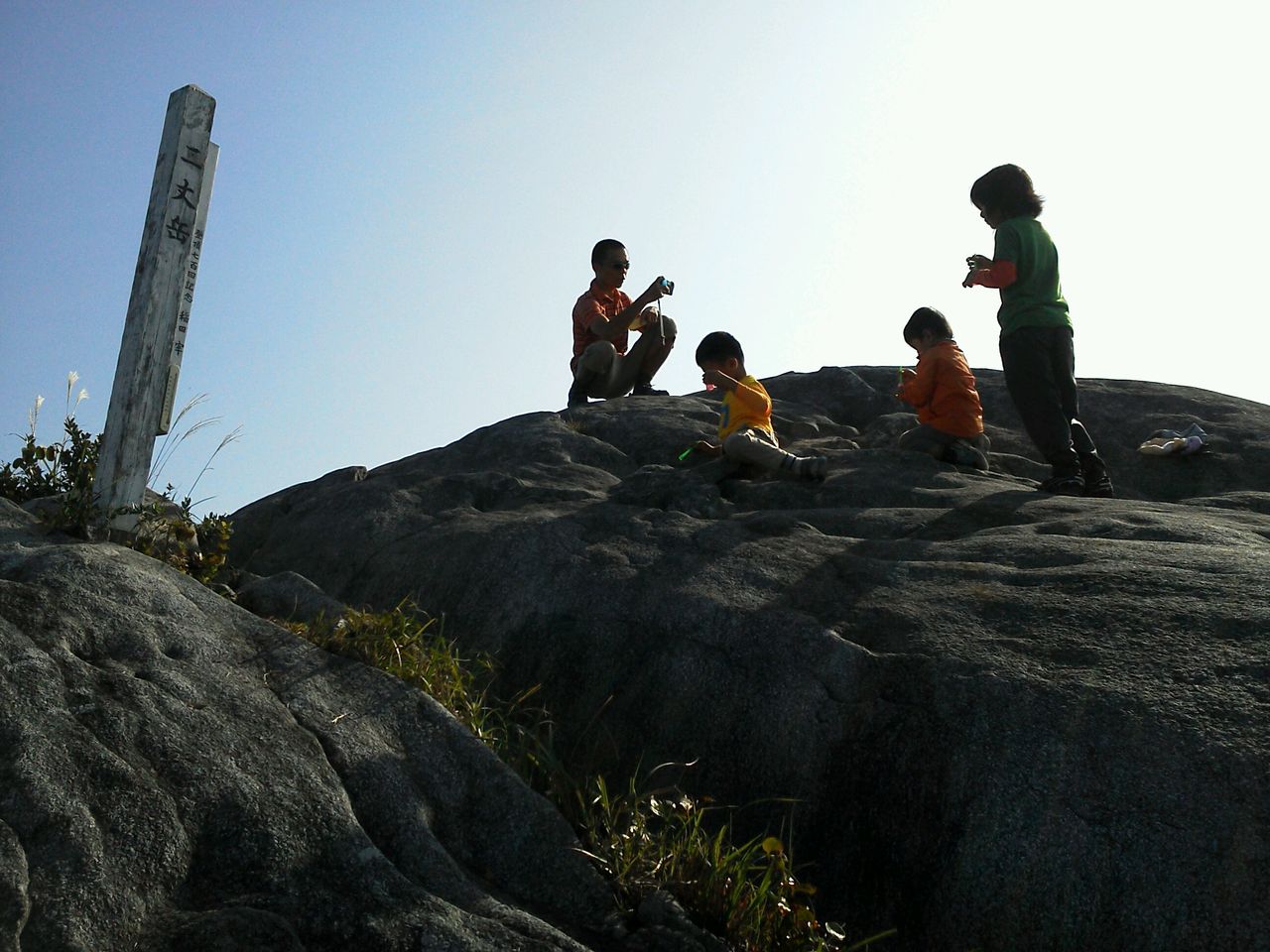 二丈岳を庭のように過ごしてる親子。頂上でのシャボン玉遊びも