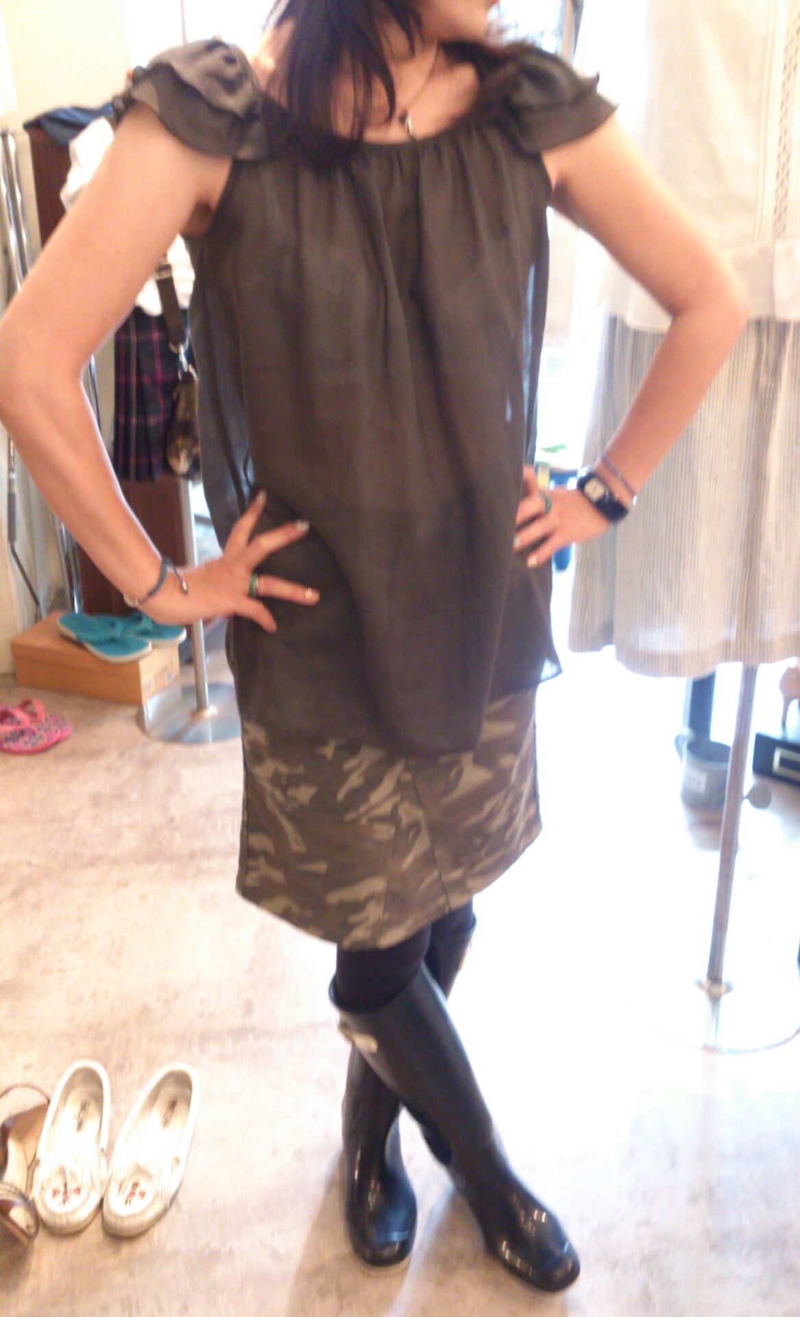 カモフラージュワンピースで来店