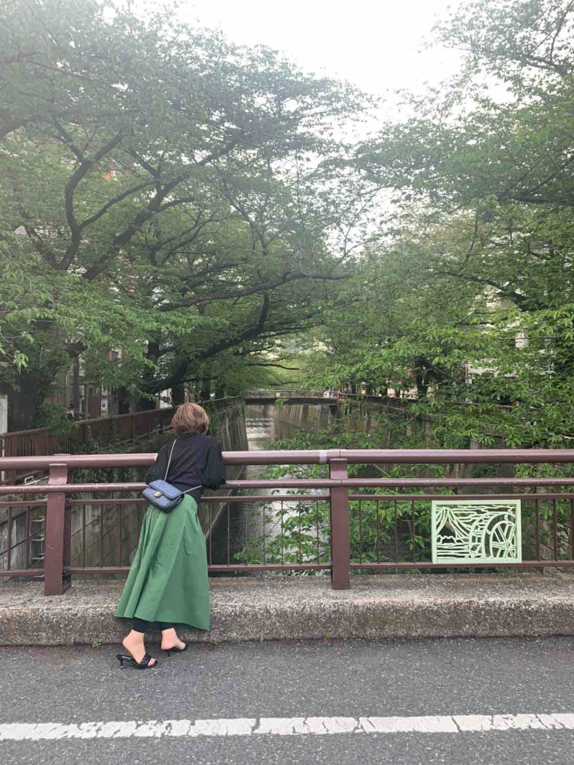 人気のデニムスカート とミュールバランスも