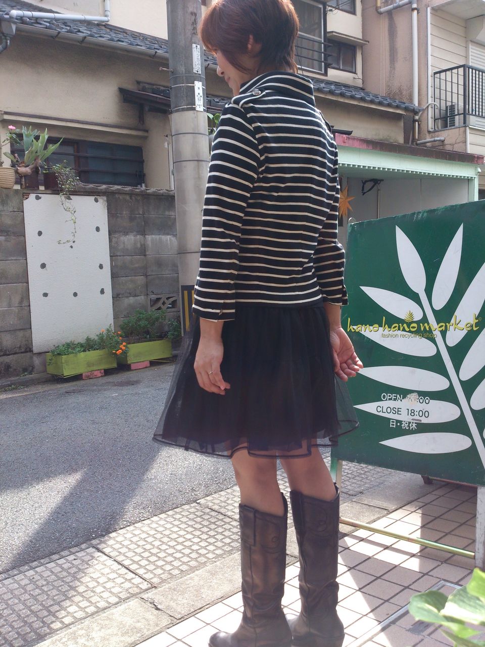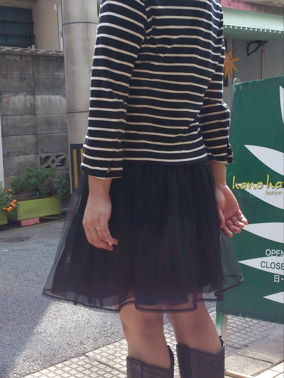 こんな風にボーダージャケットにチュールワンピで